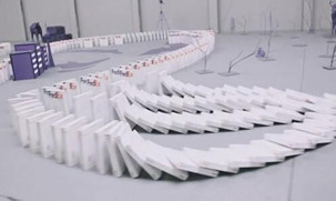 一个完美的多米诺图案是艺术、力学和建筑学等等的组合。它需要技术、耐心、投入和团队精神。但是当最终的图案呈现出来是只需轻轻的一个触碰