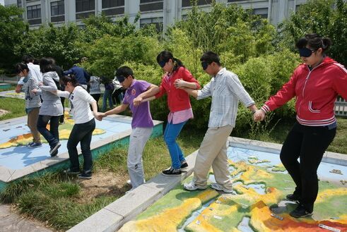 培训方式: 队员蒙上眼睛听音乐走一段布满障碍的路,在安静漆黑的会议中,我们回顾一下我们自己,我们的生活,我们的工作。最后以一首感恩的心手语版作为总结。
