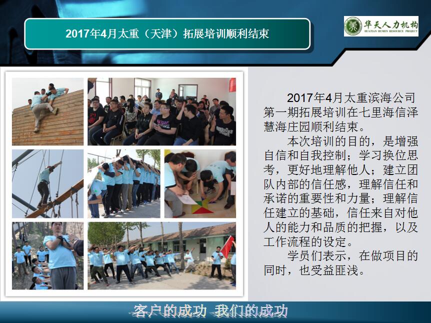 2017年4月太重滨海公司第一期拓展培训在七里海信泽慧海庄园顺利结束。